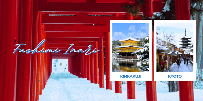 🎏 Điện thờ Fushimi Inari: tọa lạc trên Núi Inari Mountain, được thành lập năm 711 và là điện thờ dẫn đầu trong số hơn 30.000 điện thờ dành thờ phụng thần Inari tại Nhật Bản. Quý khách check in và ngắm nhìn hàng ngàn chiếc cổng Torii màu cam rực rỡ quanh những con đường mòn xinh đẹp.